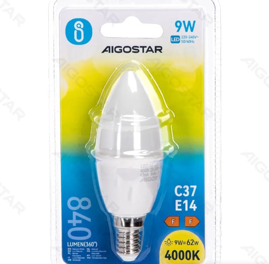 AIGOSTAR LED OLIVA 9W=62W 4000K