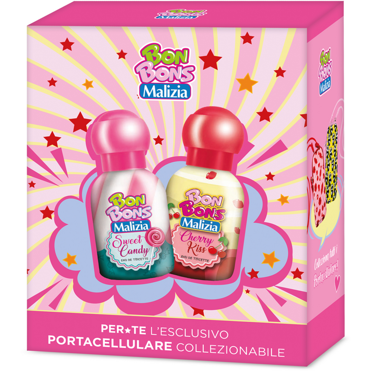 MALIZIA BON BONS COFANETTO SWEETNESS: 1 EDT SWEET CANDY 50ML - 1 EDT CHERRY KISS 50ML + PORTACELLULARE