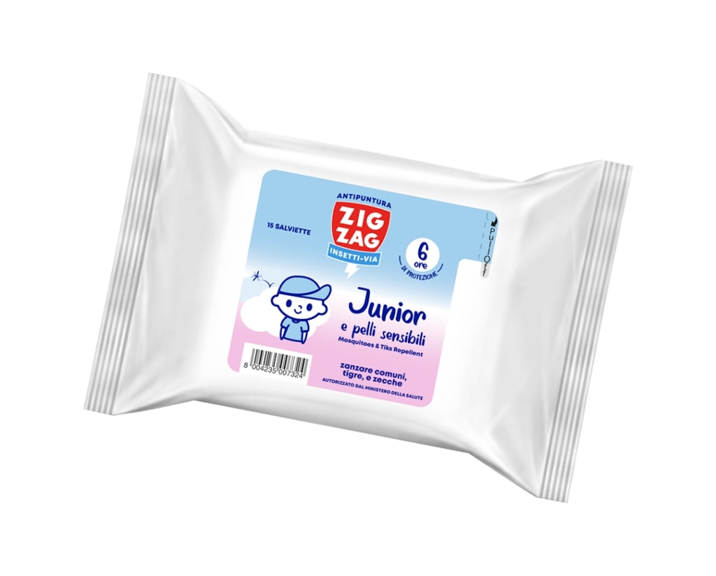 ZIG ZAG INSETTI-VIA BABY E PELLI SENSIBILI ANTIPUNTURA ZANZARE COMUNI,TIGRI TROPICALI E ZECCHE SALVIETTE 15PZ 0+