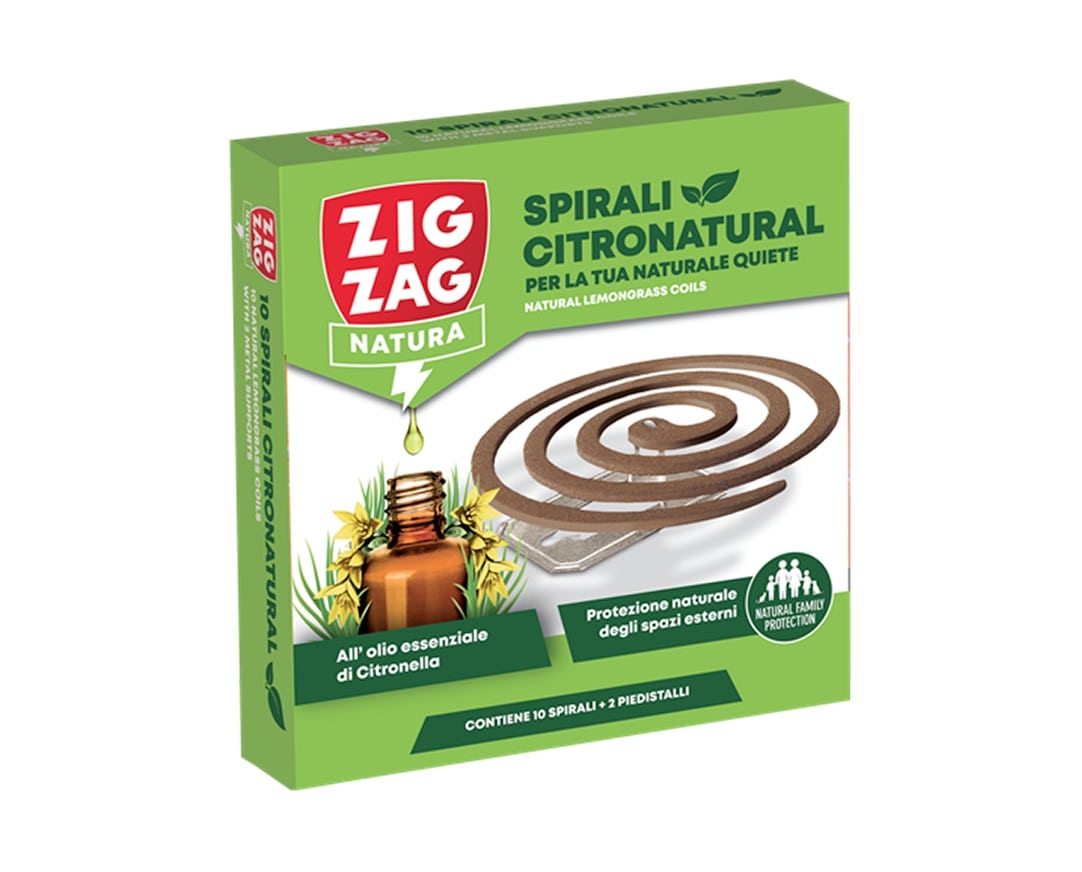ZIG ZAG NATURA SPIRALI CITRONATURAL 10 SPIRALI + 2 PIEDISTALLI OLIO ESSENZIALE DI CITRONELLA